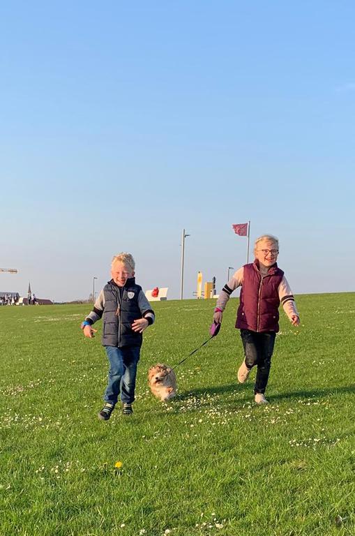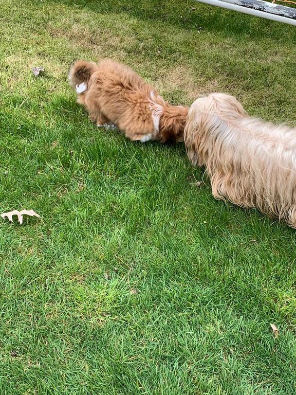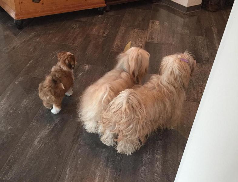 Mittlerweile sind wir schon 8 Wochen jung und machen alles unsicher. Wir laufen im Haus mit den Großen und auch draußen auf der Wiese.