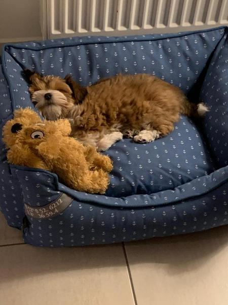 Elano ist am 21.02.19 ausgezogen. Er ist zu Karin und Andreas mit ihren zwei Kindern Jana und Linus nach Olpe gezogen. Er wurde ganz sehnsüchtig erwartet. Es scheint, dass er alle Körbchen probe liegt und in allen havi-typischen Stellungen einliegt... so schönes Spielzeug und die Welt ist in Ordnung.