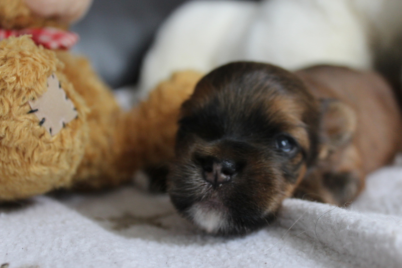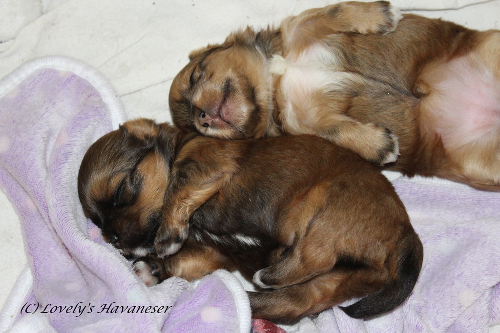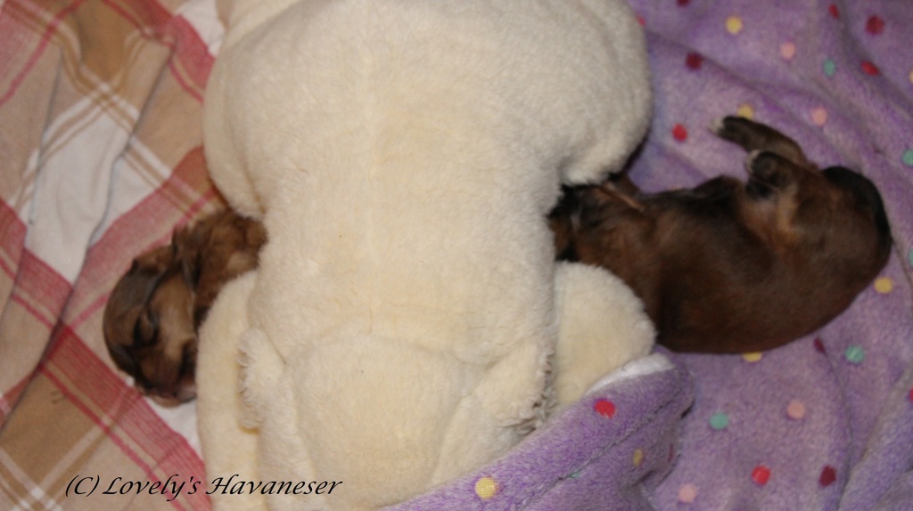 Die 1. Woche ist schon rum, so schnell - wie im Flug. Wir Welpen haben nur getrunken und geschlafen, mehr nicht... und ja, klar - wir haben zugenommen und sind gewachsen. Wir haben das doppelte unseres Geburtsgewichts erreicht... das ist doch toll, oder? Wir fangen auch schon an etwas zu blinzeln, dann endlich können wir in die Welt schauen... abwarten, dann wird Fotoshooting gemacht..