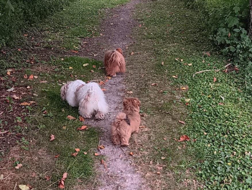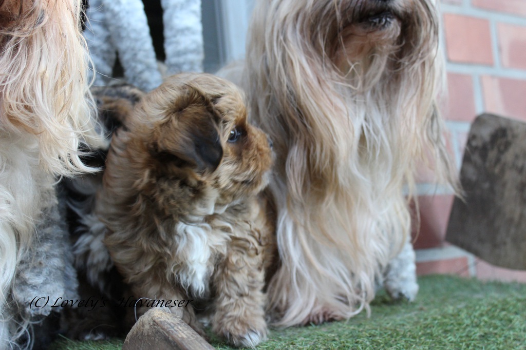 Unglaublich , es ist schon wieder eine Woche rum. Wir wachsen und wachsen, wir probieren uns, die Zähnchen kommen und wir futtern auch entsprechend mehr. Unsere Lauffreuude ist ganz schon gut. Unser Einzugsbereich hat sich auch erweitert und wir laufen mit Ziehfrauchen und unserer Hundefamilie mit wie Entlein ung Kücken.. cool, so lernen wir viel kennen.