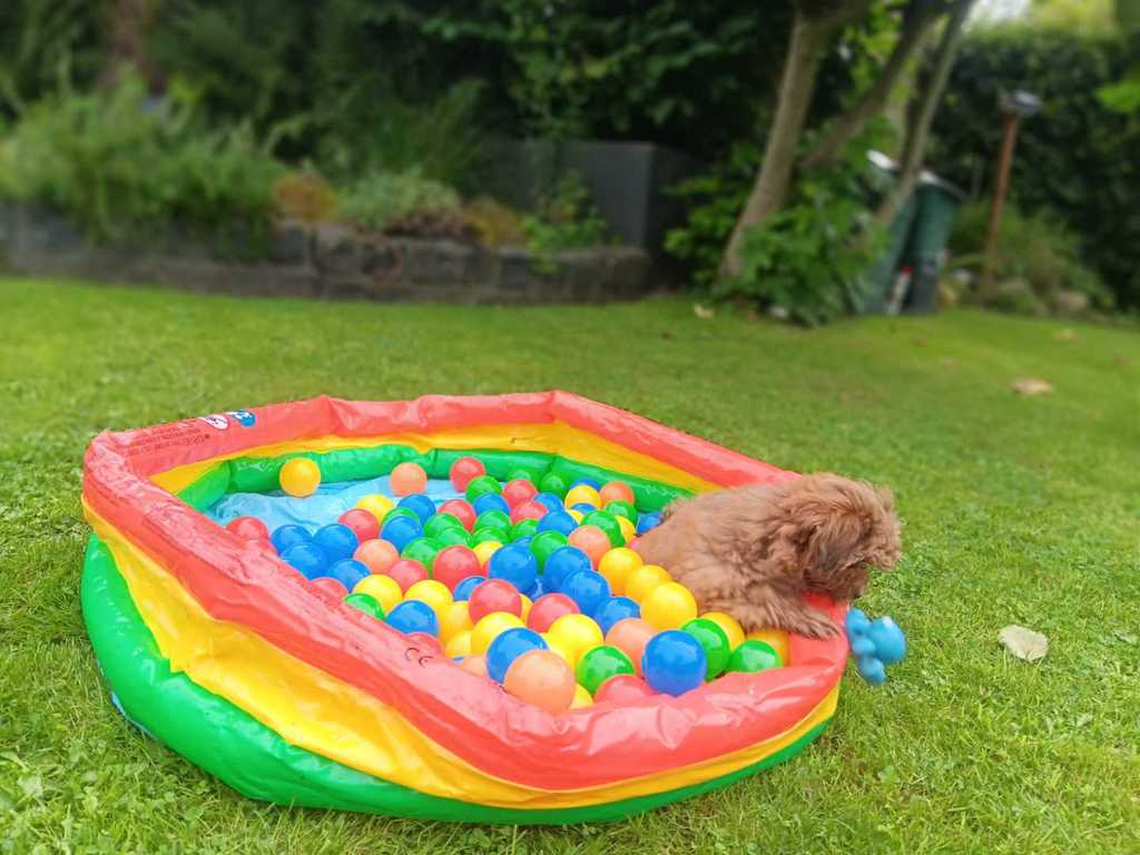 Und... was wir auch schon können (ist noch nicht dokumentiert, denn Sicherheit geht nunmal vor) ist.... die Rampe rauf und runter... und das macht uns mega Spaß und das gibt Muckis... Wir laufen mit unserer Hundefamilie mittendrin mit und so erobern wir unsere "Welt". Unser Ziehfrauchen erklärt uns ganz viele Dinge und zeigt uns, wie wir etwas erobern können. Und Nachts... träumen wir von all dem Erlebten und sagen Bescheid, wenn wir nachts Pipi müssen. Das ist ja schnell erledigt, zack raus und zack wieder ins warme Körbchen und weiter gehen die tollen Träume. Bis nächste Woche...!!